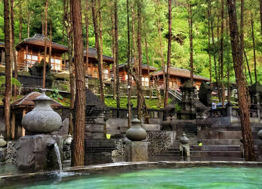 Guci Forest merupakan kawasan wisata alam yang memadukan hutan pinus, udara pegunungan, dan pemandian air panas alami. Tempat ini menawarkan suasana yang tenang dan sejuk, cocok untuk pengunjung yang ingin relaksasi maupun mencari wisata petualangan. Daya tarik utamanya terletak pada panorama hutan pinus, kolam air panas, serta spot foto bernuansa kayu dan etnik. Fasilitasnya cukup lengkap, mulai dari villa, glamping, area camping, restoran, hingga wahana aktivitas seperti ATV, tubing, dan outbound. Wisatawan biasanya datang untuk berendam air panas, camping, trekking ringan, hingga berburu foto di area hutan yang cantik.