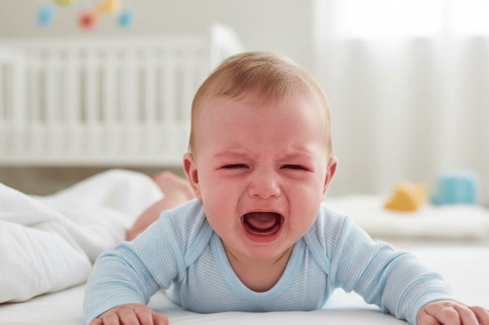 Bayi yang terus menangis atau rewel meskipun sudah digendong, diberi susu, atau diajak bermain bisa menandakan ada yang tidak beres dengan tubuhnya. Kondisi ini biasanya menunjukkan rasa tidak nyaman yang lebih serius daripada sekadar lapar atau mengantuk, sehingga Mama perlu untuk segera memeriksa ke dokter.