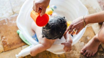 Luangkan waktu bersama keluarga untuk bermain tebak nama. Tanyakan, “Di mana mama?” lalu tunjuk diri sendiri sambil menyebut “Mama” berulang. Minta anggota keluarga lain juga ikut menyebut “Mama” agar bayi lebih sering mendengar kata tersebut dan mengingatnya. -