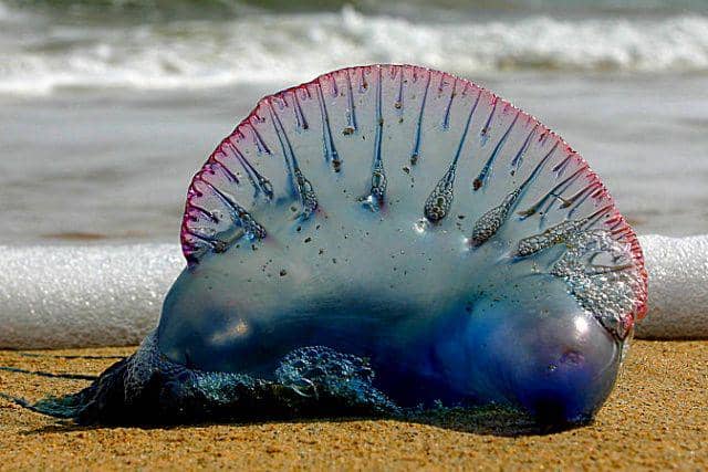 Portuguese man o’ war sering disalahpahami sebagai ubur-ubur botol biru, padahal mereka jauh lebih berbahaya. Mereka terdiri dari kombinasi organisme yang disebut zooids, yang bekerja bersama sebagai satu kesatuan. Portuguese man o’ war memiliki tentakel yang sangat mematikan dan bisa menyengat hingga membunuh ikan. Sengatan mereka juga bisa membunuh manusia. Jika kamu melihat hewan ini di pantai, sebaiknya menjauh dan tidak mendekatinya.